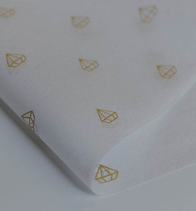 Add a premium touch to your packaging with our eco-friendly tissue and wrapping papers. These can be custom-printed with your logo or design patterns.
